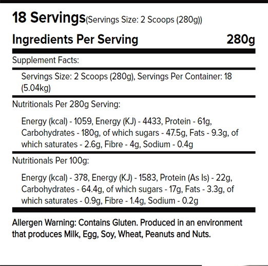 🔹 Protein + Carb Matrix – Promotes muscle growth and energy replenishment.